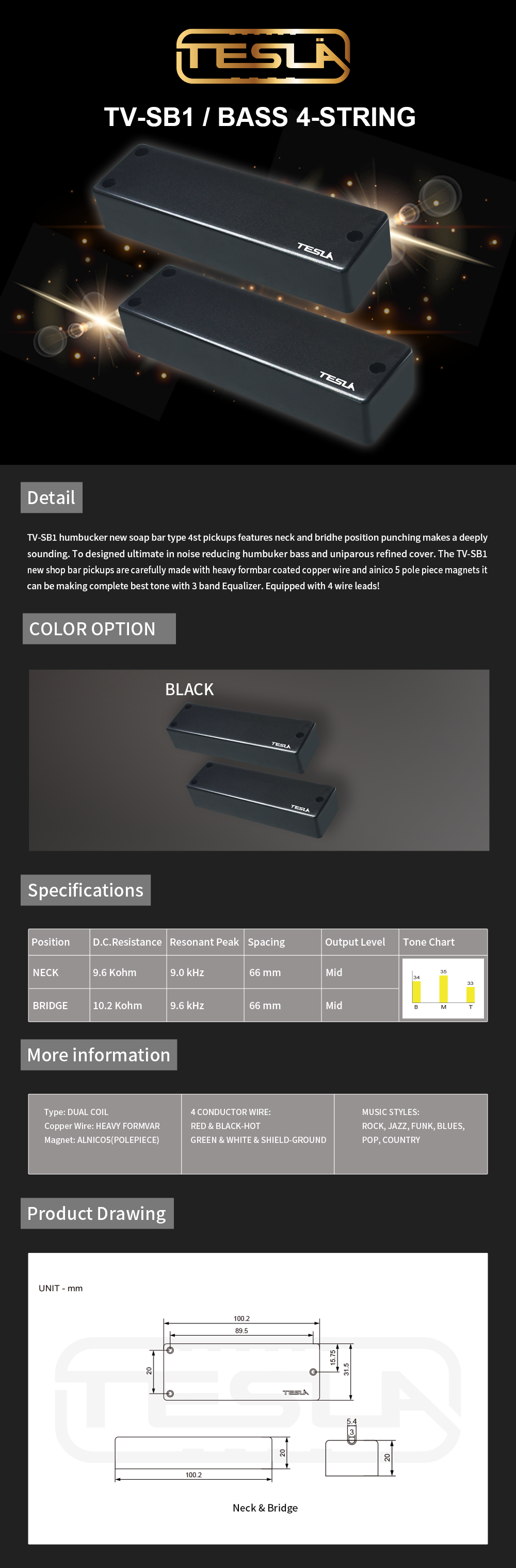 - TESLA-XT GUITAR HUMBUCKER